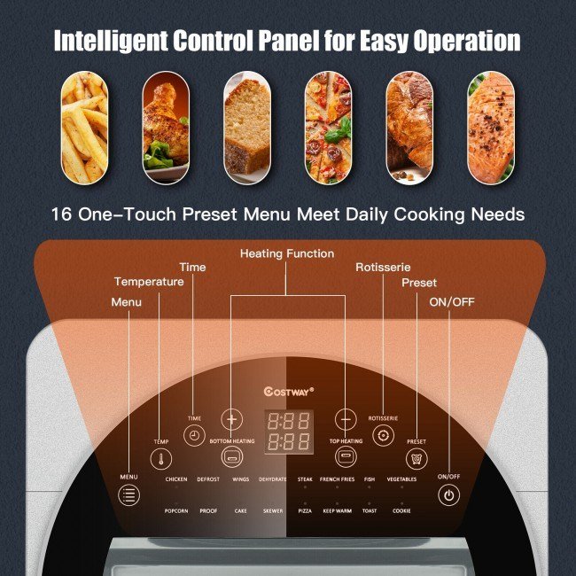Intelligent control panel for separately adjust the time, temperature, cooking menu and heating mode